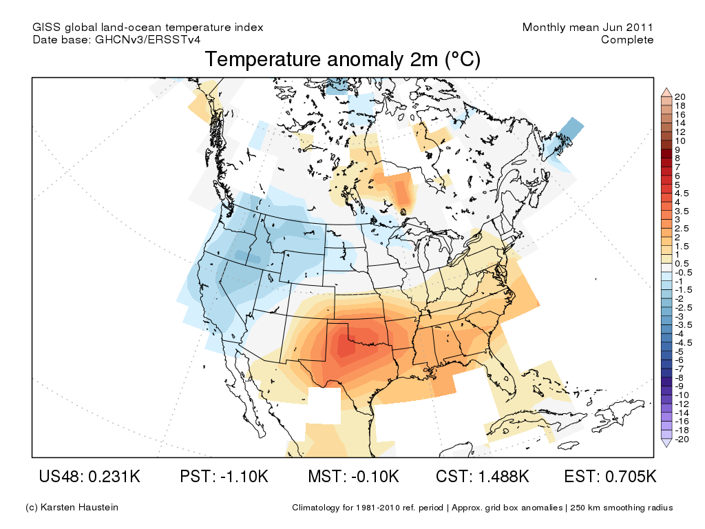GISS land-ocean 2m air temperature anomalies Jun 2011 (North America)