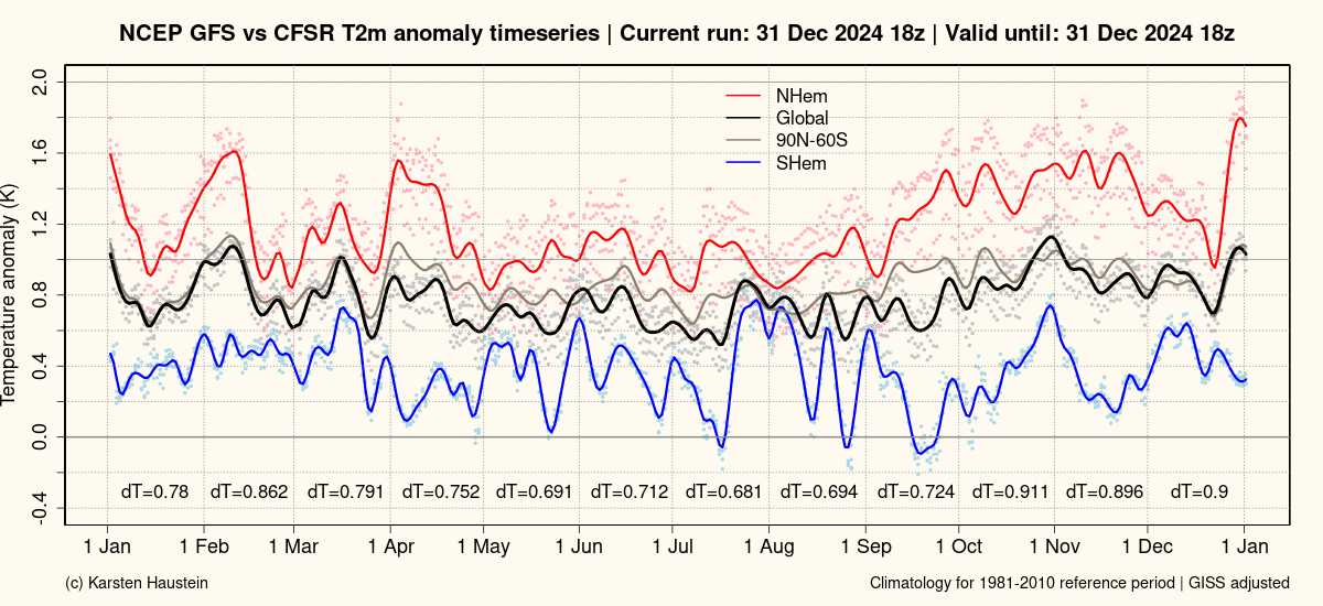 NCEP GFS 0.5deg analysis 2m air temperature anomaly timeseries (2024)